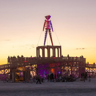 Then came Sunday: the Temple Burn. Completely opposite in energy, it was a moment of silence, reflection, and emotional gravity. As people left offerings, painted tributes, and notes inside, the temple became a sacred space for letting go. Watching it burn was heavy, almost reverent... the crackle of the fire accompanied by an overwhelming stillness. This wasn’t about spectacle or celebration. It was about rebirth, release, and honoring the cycles of life. Tears flowed freely, and for a moment, everyone around seemed suspended in collective reflection.